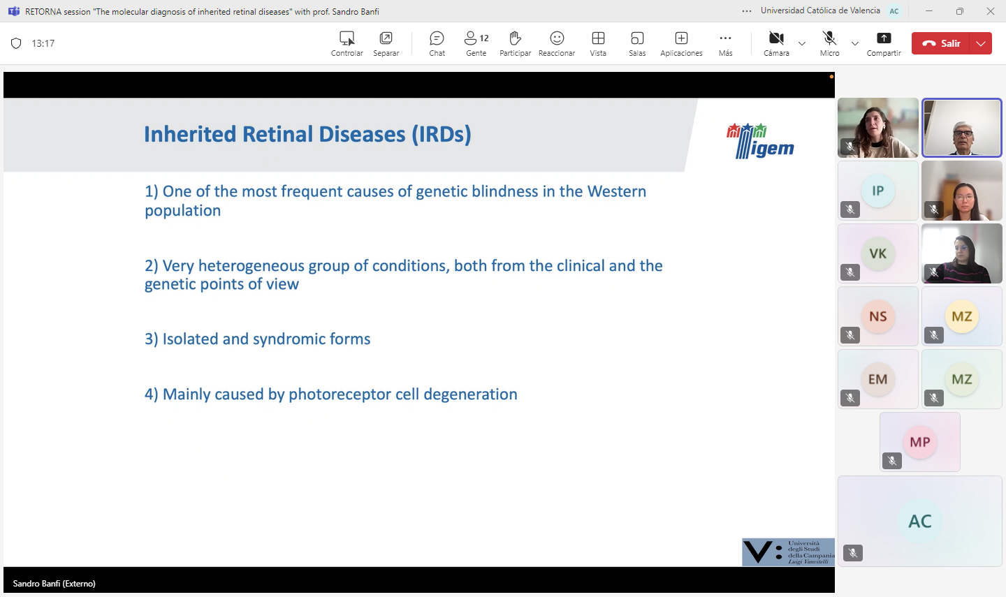Prof. Sandro Banfi shared with the students his experience and knowledge in the field of inherited retinal diseases, focusing on retinisis pigmentosa but not only, analyzing topics such as sequencing and novel IRD genes.