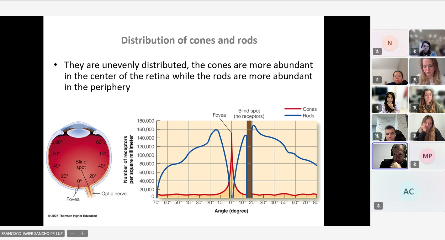 The concept of retina was analyzed deeply, going through topics such as the morphology of the retina and its layers, cones and rods, photoreceptors, RPE, bipolar and ganglion cells and so much more. Students could admire also some of the drawings made by the researcher Santiago Ramón y Cajal.