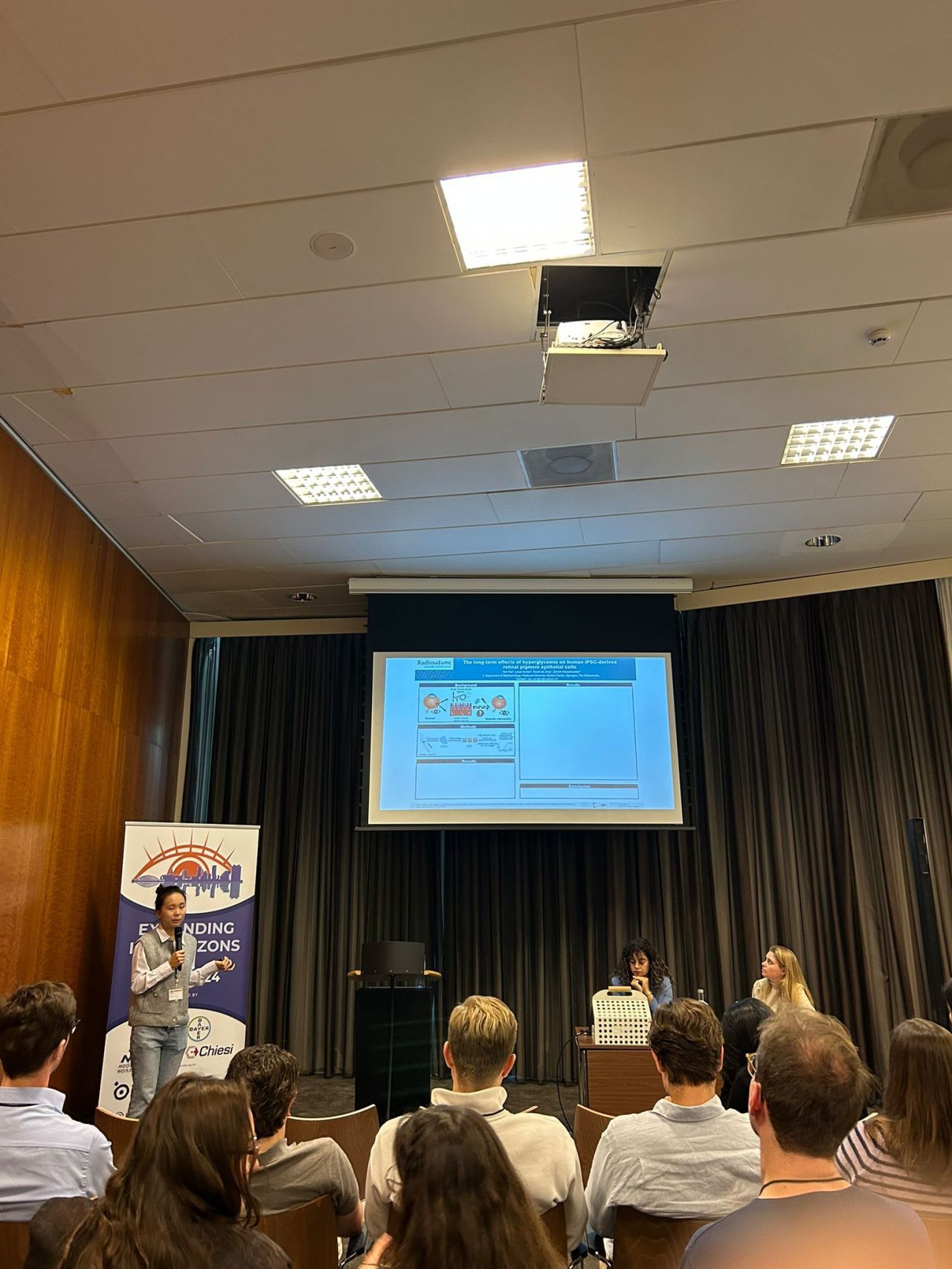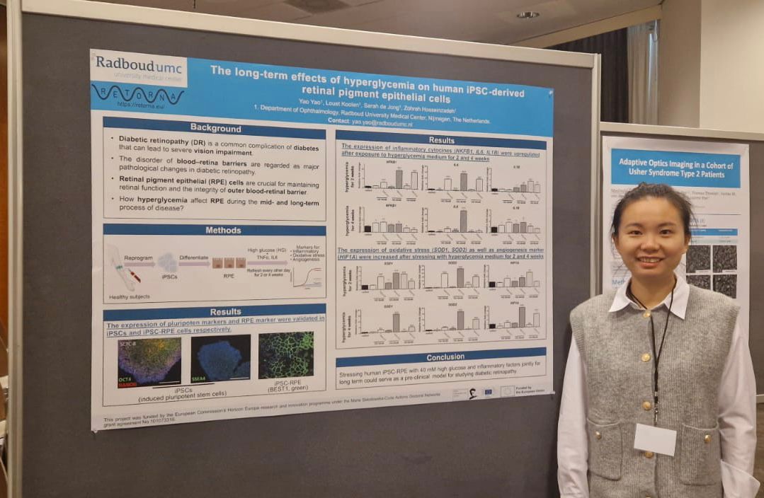 Our DC Yao Yao presented, during the poster session, her groundbreaking research on in vitro models of diabetic retinopathy (DR) and age-related macular degeneration (AMD). Her presentation showcased innovative approaches to understanding these complex diseases and potential therapeutic avenues.